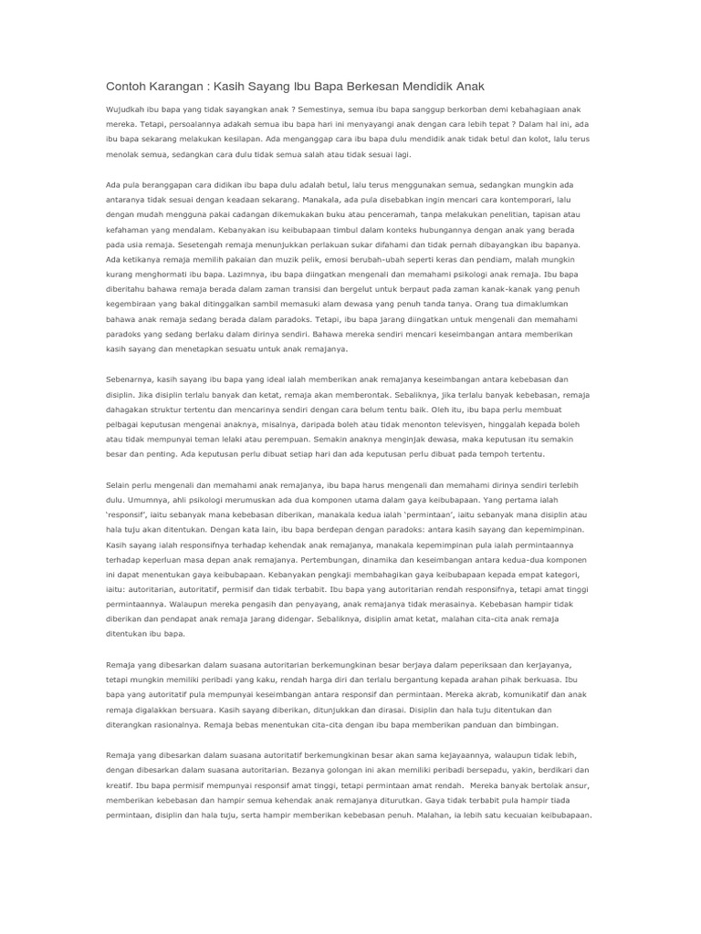 Related : Cara-Cara Menunjukkan Kasih Sayang Kepada Ibu Bapa Karangan Spm : Contoh Jawapan Karangan - Semasa kita kecil dahulu, ibu bapa adalah insan apa kata bagi anda yang sudah mempunyai pekerjaan yang tetap, sumbang sedikit wang ringgit hasil gaji anda itu kepada ibu bapa anda, tidak kira ibu bapa..